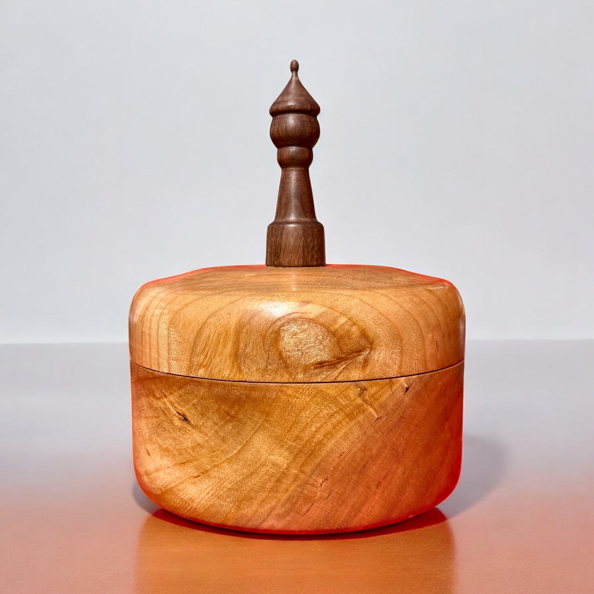 Expertly crafted from cherry wood with a walnut finial, this decorative keepsake bowl is a stylish and functional addition to any room. Use it to store your precious keepsakes or any other items of your choice